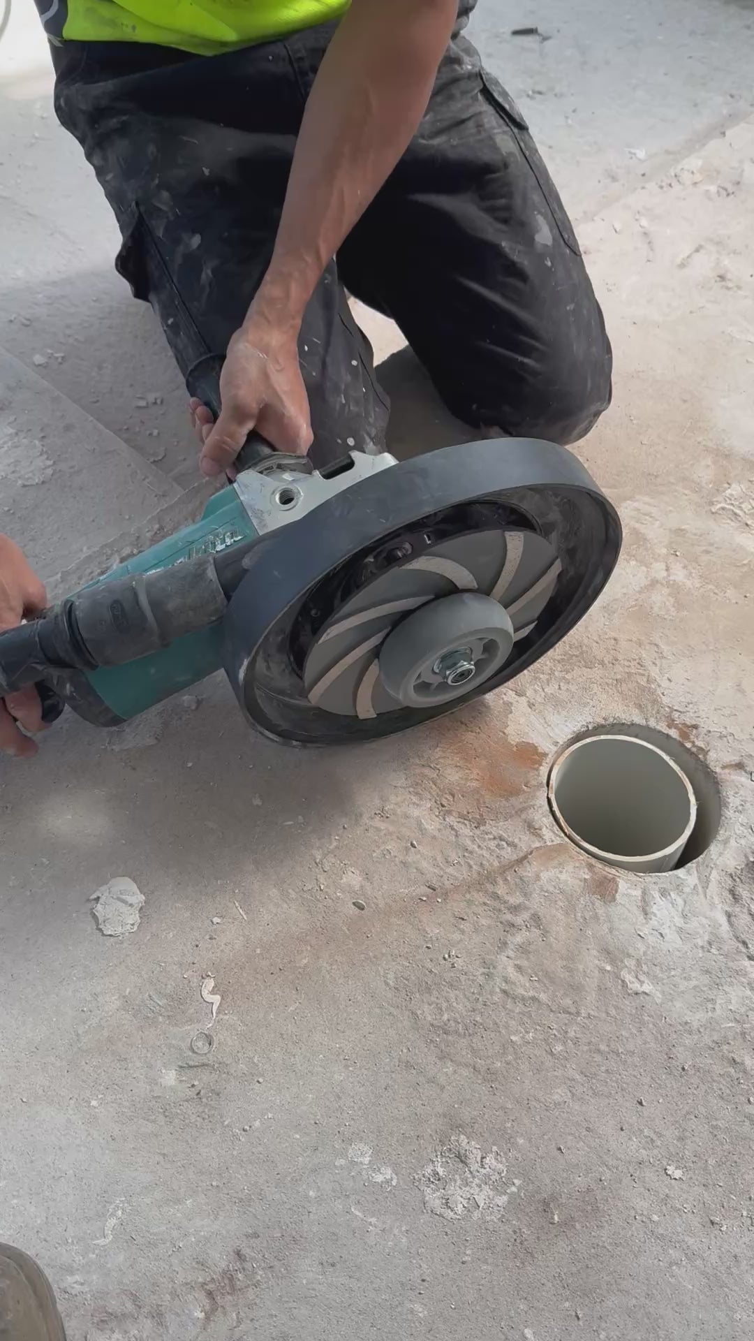 A 100mm wheel bearing sits perfectly inside any 100mm drainage pipe, acting as a central guide while cutting a full 200mm recess diameter.